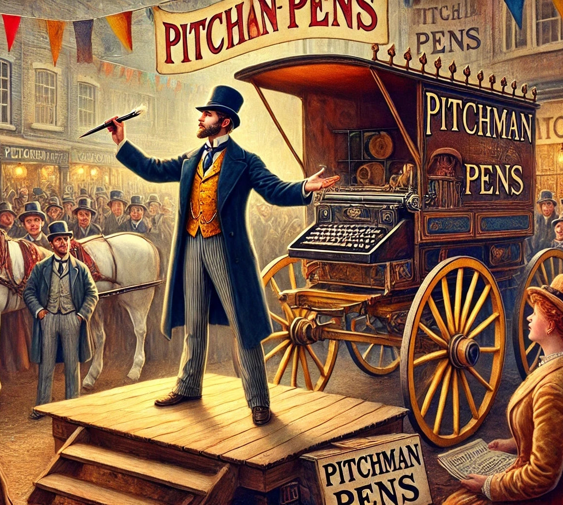 Our founder, a lifelong pitchman himself, was inspired by the colorful history of the "snake-oil" salesmen of old—those charismatic figures who would pitch their elixirs and magical potions from the back of horse-drawn wagons. When it came time to name his new company, he thought of these early salesmen who, despite the questionable nature of their products, mastered the art of the pitch. Thus, Pitchman Pens was born, paying homage to the enduring legacy of persuasive selling and the timeless appeal of a well-crafted pitch.